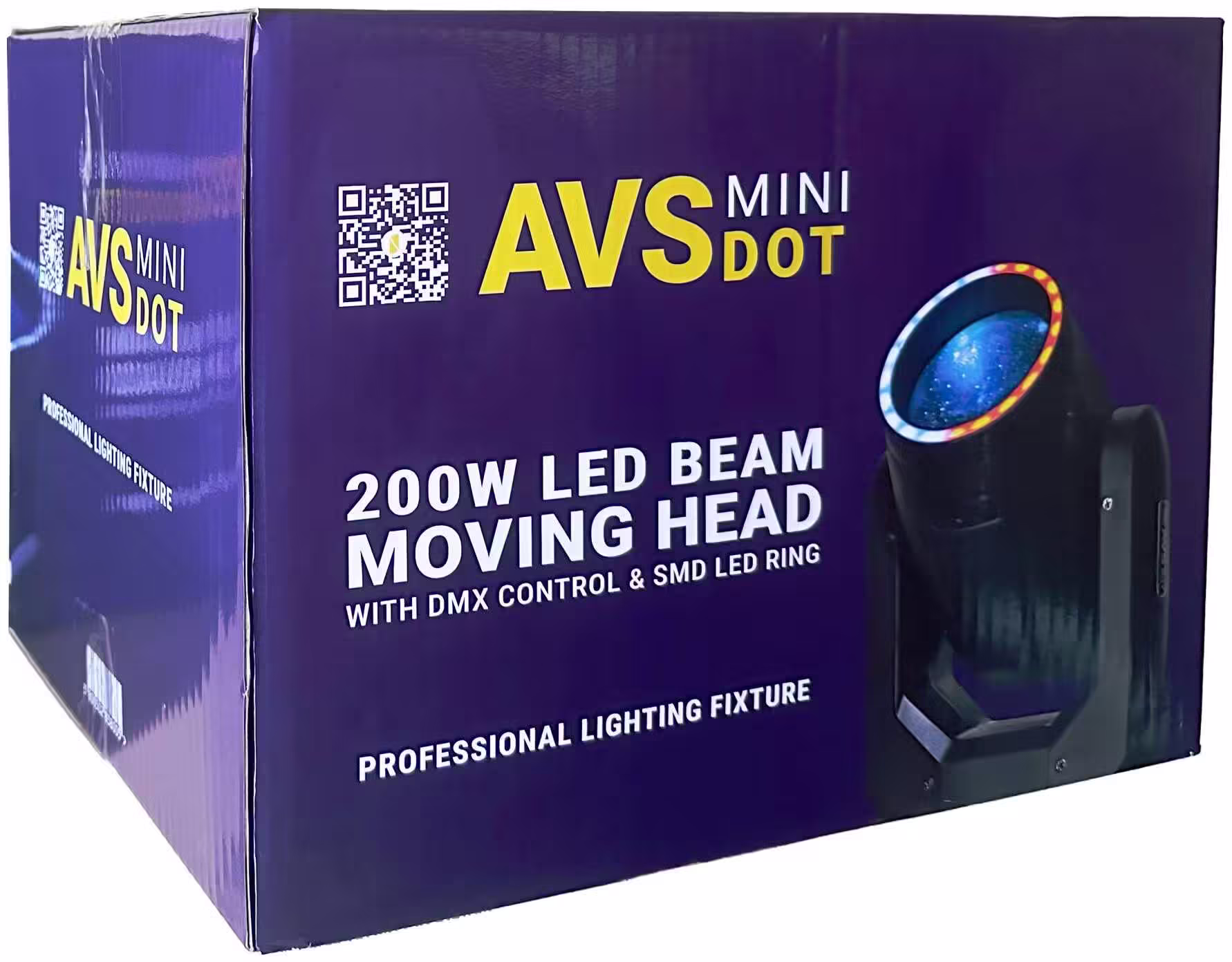 Професионалната движеща глава AVS Mini Dot 200W Beam е перфектното решение за BEAM ефект. Дизайнът позволява инсталирането в помещения с ниски тавани (40см. височина), но в същото по нищо не отстъпва на предишното поколение продукти с short-arc лампи от типа 2R и 5R, които са характерни с доста по-обемни размери и по-голямо тегло. Специално разработения фърмуер за този модел предлага 4 основни предимства пред конкуретните на пазара: