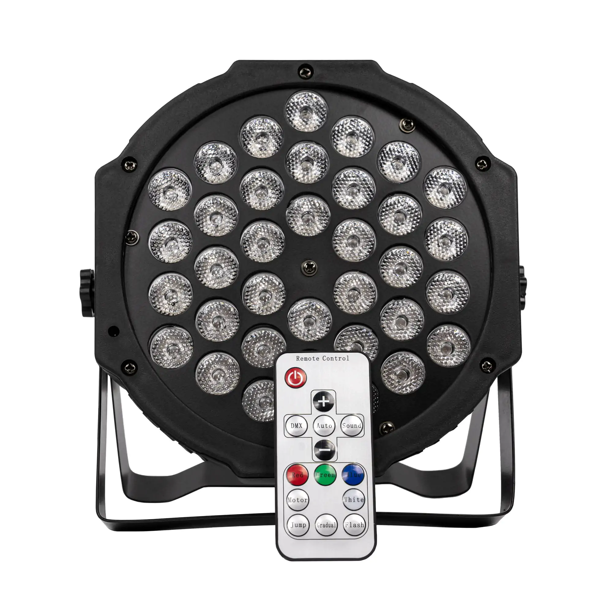 LED пар прожекторът поддържа множество режими на управление включително DMX контрол с 3 или 7 канала, автоматичен режим и активация по звук за синхронизация с музиката. Това го прави изключително гъвкав за различни приложения в професионалното осветление.