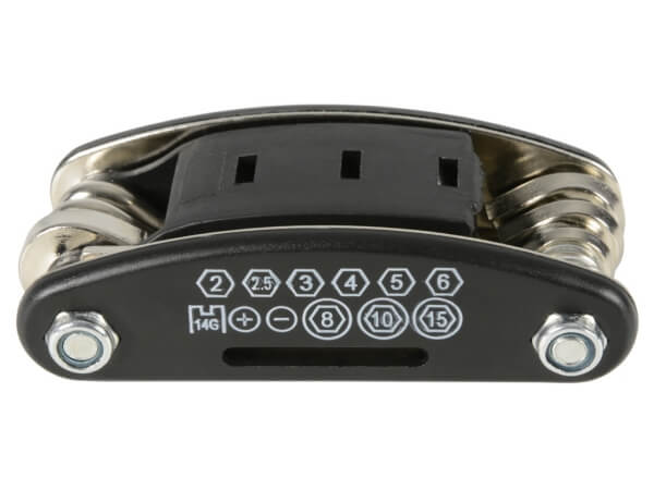 Мултифункционален инструмент, подходящ за съхранение в автомобил, велосипед, мотоциклет или друго превозно средство. Продукта е изработен от метал, издръжлив е на корозия и външни условия.